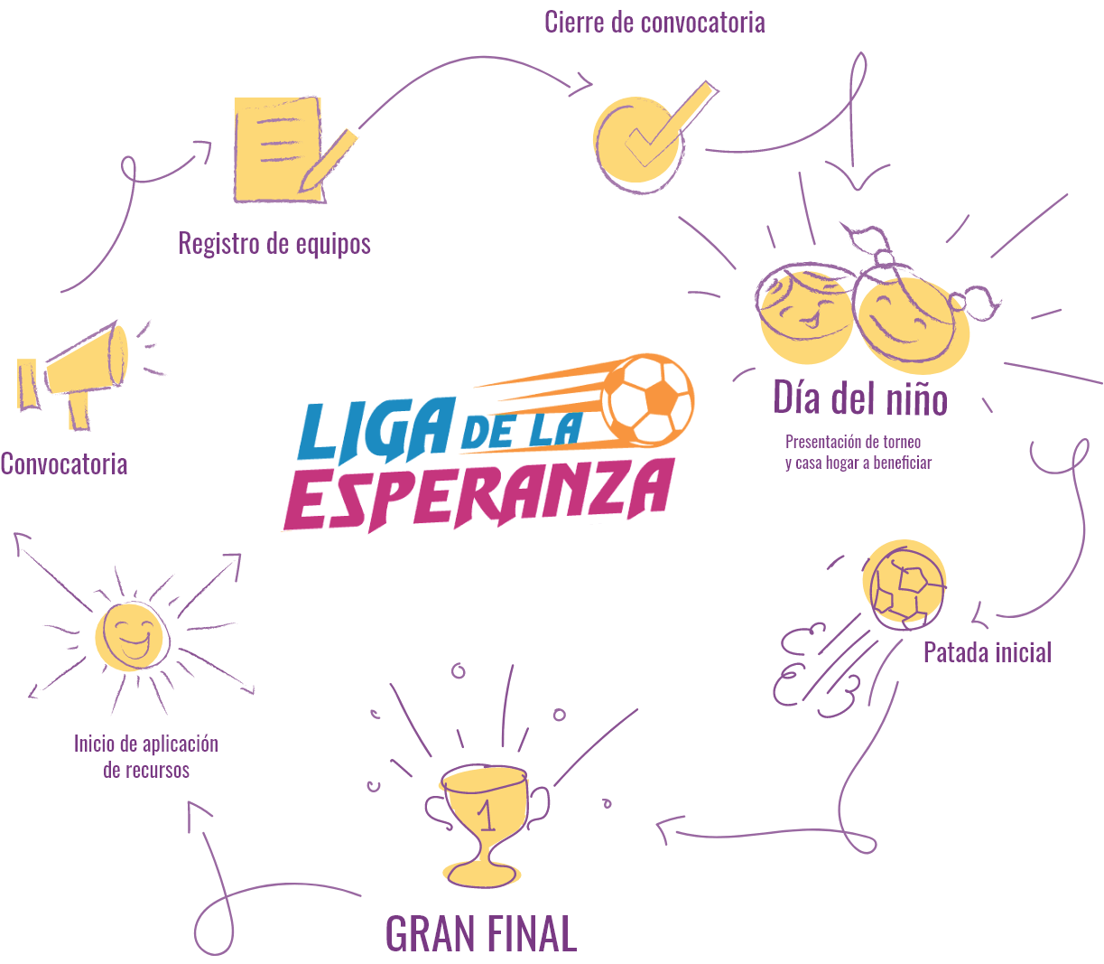 La Liga de la Esperanza™ es un torneo anual de fútbol, celebrado en verano, en la que participan 24 equipos conformados por todas aquellas Casas Hogar aliadas a nuestro sistema, mismas que compiten amistosamente con el objetivo principal de realizar deporte, convivir, y, sobre todo, con el espíritu de apoyarse entre sí.